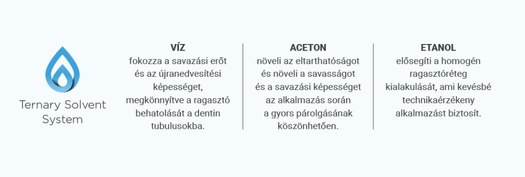 Kerr szabadalmaztatott Ternary Solvent System technológiája víz, aceton és etanol kombinációjával éri el a tökéletes hidrofób és hidrofil egyensúlyt a megfelelő bondozáshoz.